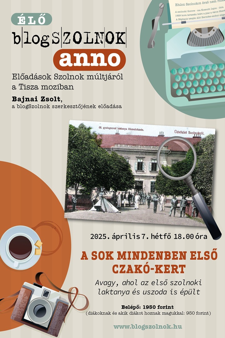 Avagy, ahol az első szolnoki uszoda is épült Szolnok egykori VI. kerületének a fiatalabbik része, ami a vasúti sínek illetve a József Attila és Bajcsy-Zsilinszky utcák alkotta háromszögben található. Azt gondolhatnánk, semmi érdekes nincs benne, holott a 19. század vége óta fejlődő városrészben épült Szolnokon először laktanya, focipálya, sportuszoda, közúti felüljáró, de itt kapott helyett az Alföld egyik első és legnagyobb autószerelő műhelye, sőt a város első automata gépkocsimosója is. És akkor az Ácslegény történetét vagy éppen Hanzély Pál tragédiáját még nem is említettük. Nincs is ebben semmi különös, hiszen minden városnak és városrésznek vannak elmesélhető történetei. A szolnoki Czakó-kertnek is, amelynek alig másfél évszázados múltját fotók, térképek és képeslapok segítségével idézzük fel.
