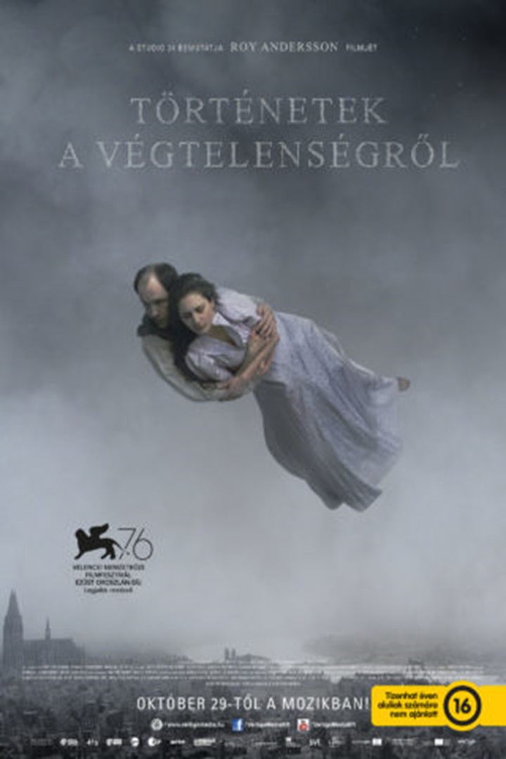 „Láttam egy embert, aki…” – film a létezésről, az élet értelméről, az emberi lét szépségeiről és kegyetlenségeiről, a maga varázsában és közhelyeivel. A Történetek a végtelenségről helyzetek és szituációk humoros sorozata, amelyben a hétköznapok banalitása átlagos emberek érzéseit hozza felszínre, s amelyben a jelentéktelennek tűnő és a történelmi pillanatok egyenrangúvá válnak. Legyen akár szó hitét vesztett papról, élete átlagosságát sirató idős férfiról, menetelő hadifoglyokról, táncoló kamaszokról, vagy akár egy cipő bekötéséről – minden pillanat bírhat jelentőséggel, és lehet egyidejűleg jelentéktelen a külső megfigyelő számára. Ezt kínálják Roy Andersson megfigyelései, az elmaradhatatlan skandináv humorral körítve. A svéd kultrendező és forgatókönyvíró, Roy Andersson (Svéd szerelmi történet, Dalok a második emeletről, Te, aki élsz, Egy galamb leült egy ágra, hogy tűnődjön a létezésről) új filmjének világpremierje az A kategóriás Velencei Nemzetközi Filmfesztivál versenyprogramjában volt. Andersson a legjobb rendezés Ezüst Oroszlán-díját nyerte el a világ legrégebbi filmfesztiválján. A film mások mellett elnyerte a legjobb vizuális trükkök Európai Filmdíját is. Az egyik legelismertebb kortárs skandináv filmrendező ezúttal is filozófiai és létkérdéseket boncolgat fekete humorba ágyazva. Andersson operatőre ismét a magyar Pálos Gergely (Randikutya, Egy galamb leült egy ágra, hogy tűnődjön a létezésről, Dark Chamber) volt.
