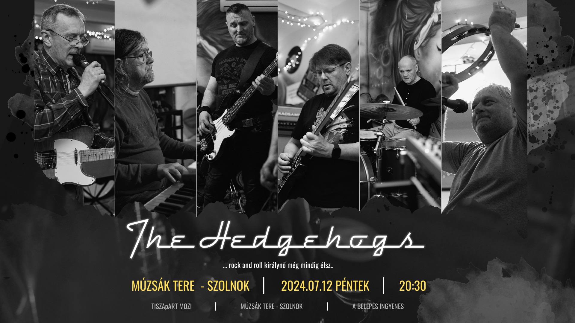 Ingyenes koncert a Múzsák terén!2024. július 12-én, pénteken 20:30-tól igazi rock&roll és blues dallamok csendülnek fel a nyári estén.THE HEDGEHOGS:A zenekar zenét szerető munkatársakból alakult 2011. év elején egy munkahelyi kis közösségből. A zenekar műsorában a klasszikus magyar és angol rock & roll és blues dalok mellett napjaink előadóinak dalai is hallhatóak. A dalok kiválasztása során nagy figyelmet fordítunk arra, hogy a rock and roll és blues műfaj kedvelőinek ritkán hallható dalokat is bemutassunk. A magyar és angol nyelvű dalok között hallhatsz Hobo, P. Mobil, Rolling Stones, Cream, Tab Benoit, Gary Clark Jr., John Mayer.és Deák Bill dalokat.A zenekar tagjai:Berdó Péter – ének, gitárMosonyi Gábor – szájharmonika, ének, gitárKirály Ferenc – gitárLitkei László – basszusgitárFazekas Károly – dobKatona János – billentyű