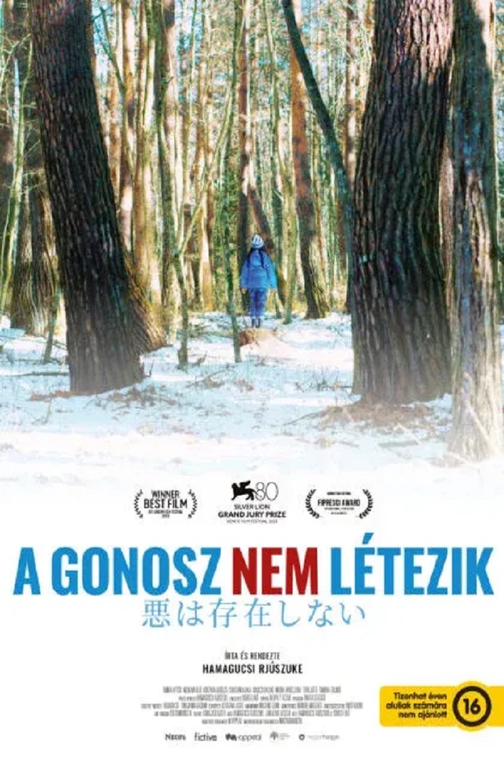 Takumi és lánya, Hana egy Tokió melletti kis faluban élnek. Egy nap befektetők érkeznek a fővárosból, akik luxuskempinget (glampinget) építenének Takumiék szomszédságában. A természettel harmóniában élő család a maga eszközeivel próbálja megakadályozni a környezetkárosító beruházást, amit ráadásul az erdei szarvasok kedvenc tisztására tervez a kivitelező. Az Oscar-díjas Hamagucsi Rjúszuke (Vezess helyettem, A szerencse és képzelet kereke) zenből induló ökofilmje a természetet kizsákmányoló emberről szóló kíméletlen szatíra. A gonosz nem létezik a slow cinema elemeiből fokozza pattanásig a feszültséget, a hófödte japán erdő meditatív képei kegyetlen végkifejlet felé sodornak. A film a 2023-as Velencei Filmfesztiválon elnyerte a zsűri nagydíját, azóta a világ számos seregszemléjén vetítették, Chicagótól Seattle-ön át Londonig. Az egyre látványosabb és pusztítóbb természeti katasztrófákkal járó klímaváltozás különösen aktuálissá teszi Hamagucsi keserédes humorú, a városi és vidéki emberek közötti ellentétekre kihegyezett kiáltványát.