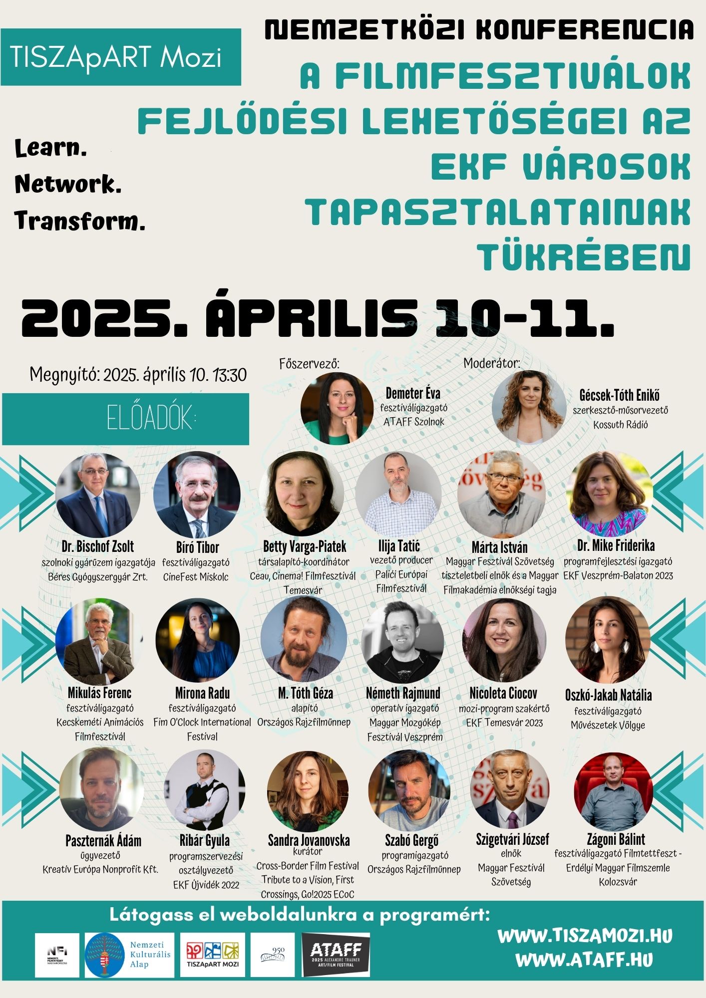 2025. április 10-11-én A filmfesztiválok fejlődési lehetőségei az EKF városok tapasztalatainak tükrében címmel szakmai tanácskozást szervezünk.Konferenciánk célja, hogy népszerűsítse a hazai filmfesztiválokat, valamint fórumot biztosítson a fesztiválok szervezőinek partnereket, szponzorokat találni. Résztvevőink lehetőséget kapnak a tájékozódásra, hogy milyen társrendezvények segíthetik a filmfesztiválok sikerességét. Célunk továbbá, hogy ezek a filmes események, mint turisztikai vonzerő és úti cél megállják a helyüket, még több látogatót vonzzanak a rendezvényeknek helyet adó városokba. Mindezen tudást kiegészítve meghívtuk határon innen és túl azon Európa Kulturális Fővárosa nyertes városok képviselőit is, akik tapasztalataikkal, a kultúra ezen megközelítéséről bővebben is beszámolhatnak.A konferencián a résztvevőknek lehetőségük nyílik nemzetközi partnerek keresésére, hazai és külföldi jógyakorlatokba való betekintésre, különböző példákon keresztül a tapasztalatcserére és a fesztiválok kapcsán az egyes szervezési, lebonyolítási feladatok könnyebb átláthatóságába. A konferencia azt a célt is kívánja szolgálni, hogy a jelenlévők hosszú távú együttműködési stratégiát alakítsanak ki, akár hálózatba szerveződve a jövőben sikeresen tudjanak elindulni külföldi pályázatokon konzorciumi partnerként.Az esemény elsősorban szakmai fórum, de nyitott minden kedves érdeklődő számára!A konferencián főként angol nyelvű prezentációk és kerekasztal beszélgetések várhatóak, azonban a panelek mindegyikének megértését szinkrontolmácsok segítik.Megnyitó 2025. április 10. 13:30 TISZApART Mozi "B" teremA részletes programot az eseményen belül és a Mozi weboldalán is közzétesszük:A konferencia főszervezője:Tisza Mozi Kft.A konferencia fő támogatói:Nemzeti FilmintézetNemzeti Kulturális AlapAz esemény moderátora: Gécsek-Tóth Enikő Kossuth Rádió szerkesztő-műsorvezetőA részvétel ingyenes, de regisztrációhoz kötött. Regisztráció április 8-ig a szummerorsi@tiszamozi.hu címen.