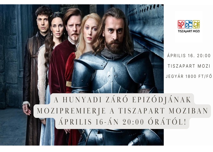 A Hunyadi záró epizódjának mozipremierje és közönségtalálkozó a TISZApART Moziban április 16-án 19:30-tól.Vendégünk Vörös Márton, a záró epizód látványtervezője.Jegyár:1800 Ft/fő Hunyadi záró epizód - kaland és történelmi film, 84 perc Rendező: Lengyel BalázsA Hunyadi című sorozat egy szerény körülmények közé születő hős nagyszabású történetét meséli el, aki 1456-ban hajthatatlan elszántságával, minden várakozás ellenére legyőzte a sokkal hatalmasabb oszmán sereget, megakadályozva ezzel a Vatikán meghódítását, illetve a középkori Nyugat-Európa török megszállását. Hunyadi János így nem csupán Magyarország, de egész Európa történelmének meghatározó alakjává vált. A tíz epizódos minisorozat Bán Mór azonos című történelmi regényfolyamát dolgozza fel, melyek tíz évvel az első kötet megjelenése után is bestseller könyvek Magyarországon. Bán regényei gazdag és egyedülálló betekintést nyújtanak a 15. századi Közép-Európa, illetve az Oszmán Birodalom intrikáiba és drámai konfliktusaiba. A nemzetközi közönségnek is szánt sorozat Hunyadi életét követi nyomon, aki miután gyermekként szemtanúja lesz, ahogy egy török portyázó csapat lemészárolja az egész családját, később pedig elragadja első szerelmét az Oszmán Birodalom, bosszút esküszik. Ez a nyughatatlan tűz hajtja végig Hunyadit élete során, ahogy kisnemesből királyi bandériumi katonává, később a Magyar Királyság legsikeresebb hadvezérévé, majd kormányzójává emelkedik. A produkció a Hunyadi életén átívelő folytonos küzdelmet tárja elénk, melyet nem csak az örökké terjeszkedő Oszmán Birodalommal, de az országon belül szerzett ellenségeivel is folytatnia kell. A történet Hunyadi legnagyobb katonai sikerénél tetőzik, mikor a látszólag leküzdhetetlen esélytelenség ellenére győzedelmeskedett az előrenyomuló oszmán sereg felett, Nándorfehérvár ostroma alatt. A nándorfehérvári diadalnál, amely örökre megváltoztatta Európa történelmét.Köszönjük Hunyadi produkció & TV2!