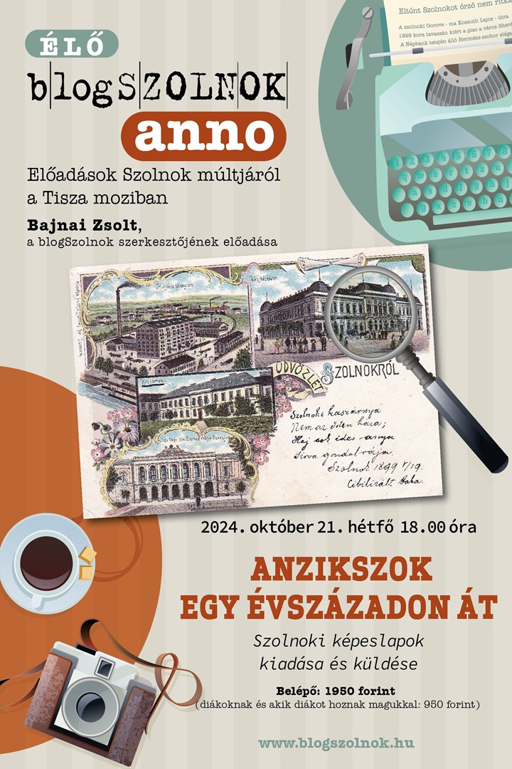 Szolnoki képeslapok kiadása és küldése Ami ma a közösségi oldalakon megosztott útibeszámoló, szelfi vagy rövid, de fontos üzenet, az a legutóbbi két századforduló között a képeslapok és a rajtuk küldött üzenetek. A 19. század végének „kommunikációs találmánya” Szolnokon is hamar felbukkant, sőt az 1890-es években megjelentek a helyi képet mutató, helyben gyártott kiadványok. A város részleteit mutató, vagy itt készülő, sok esetben pedig az innen küldött képeslapok fontos forrásai Szolnok múltjának. Az Élő blogSzolnok Anno sorozat kissé rendhagyó előadása szolnoki kötődésű képeslapok segítségével igyekszik bemutatni, hogy a postai küldemények miként járulhatnak hozzá a város múltjának a megismeréséhez.